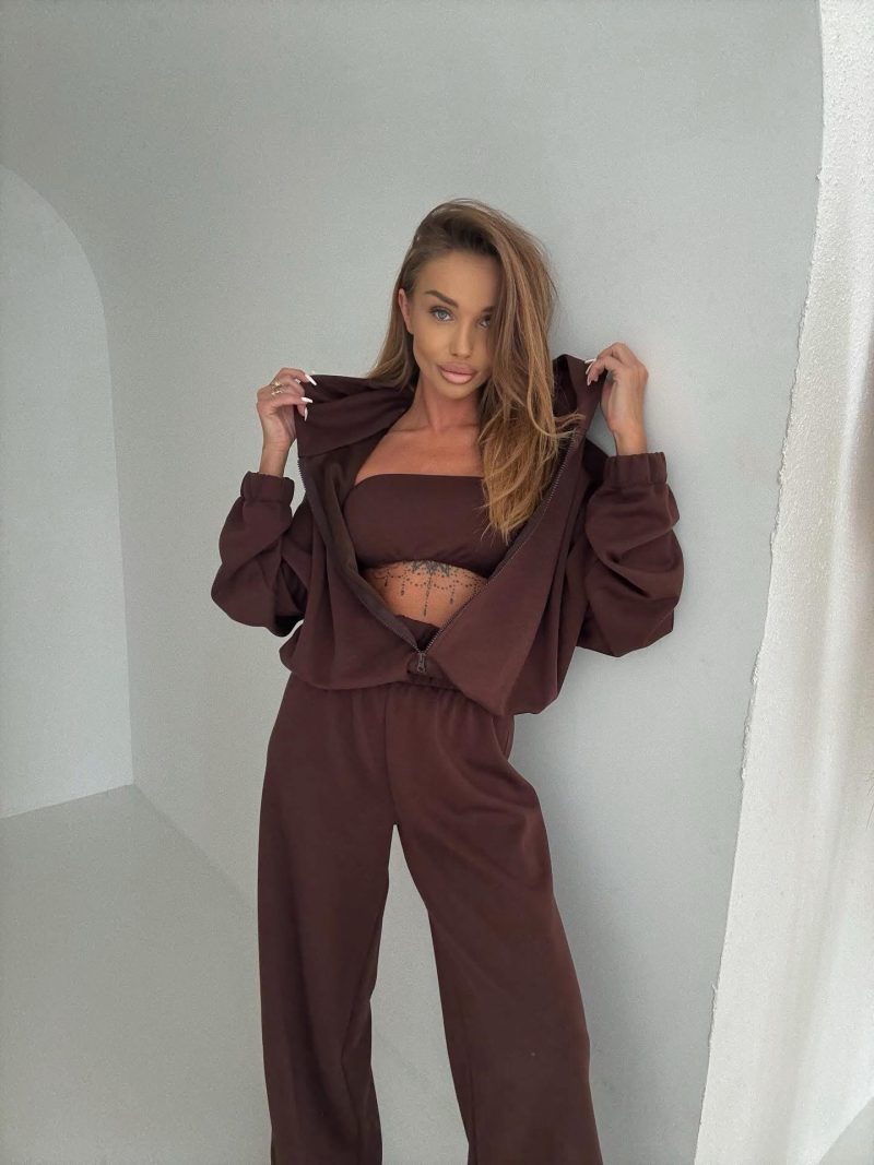 Jostas, džempera un bikšu komplekts. Zīmējums ir skaists un lieliski pielāgojas ķermeņa formai. Izgatavots Polijā no augstas kvalitātes auduma, ideāli piemērots siltam laikam.