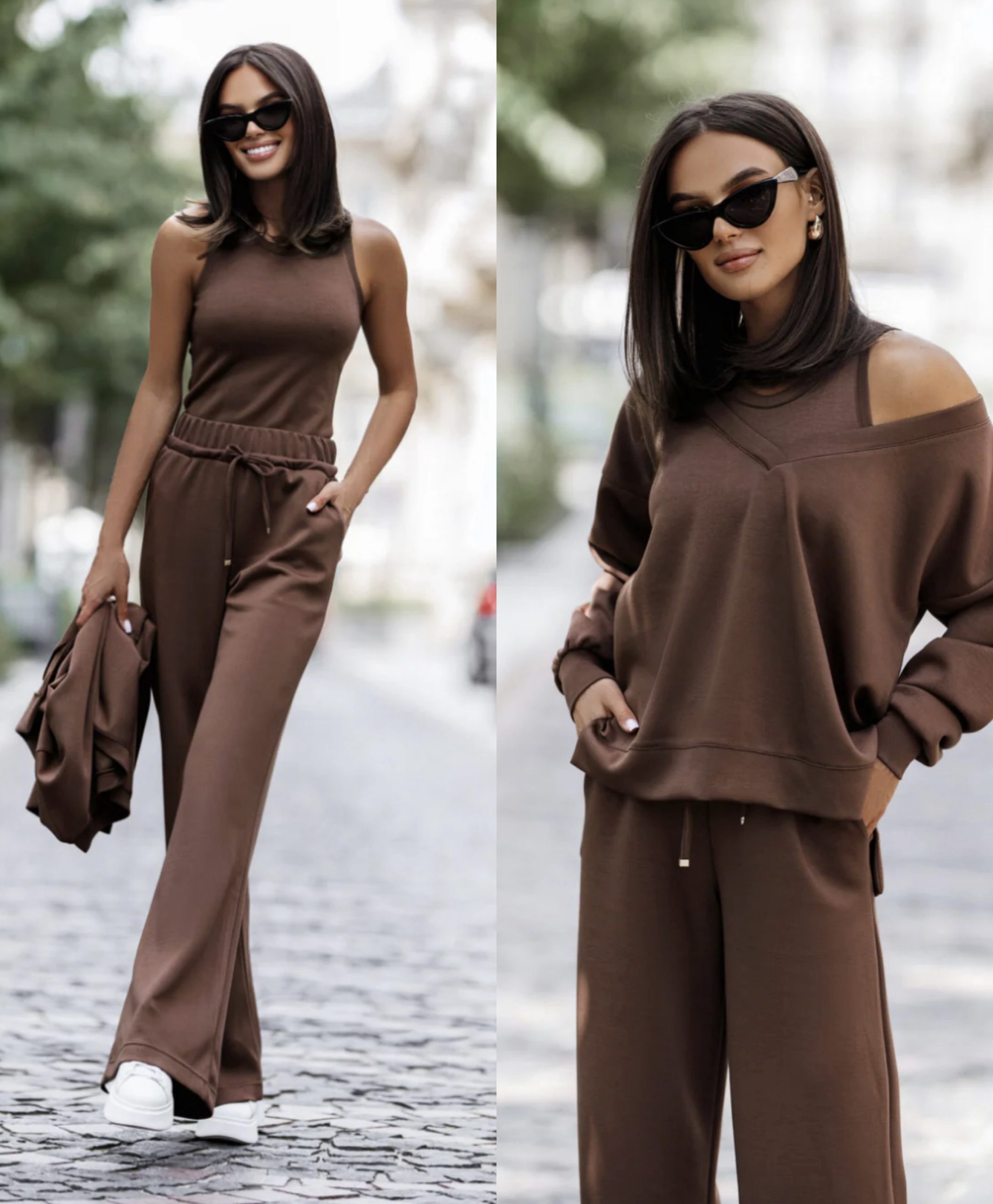 Trīsdaļīgs uzvalks. Kvalitatīvs šūšanas darbs. Ideāli piemērots atpūtai