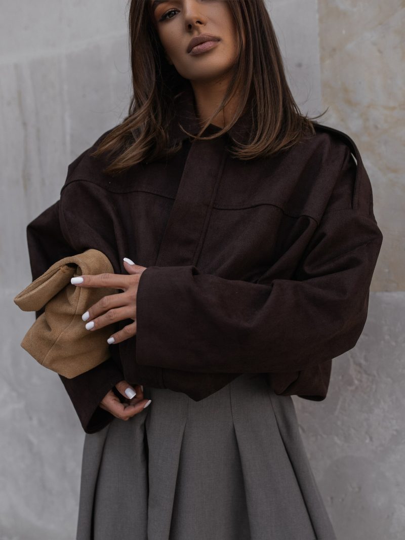 Burbuļveida matu griezums. Jaunākā mode. Zamšādas apdare. Piemērots jebkuram apģērbam.