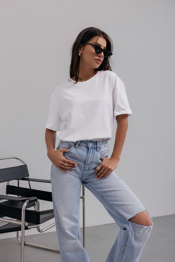 Viegli savienojams T-krekls no stingra, kvalitatīva auduma. Sastāvs: 100% kokvilna.