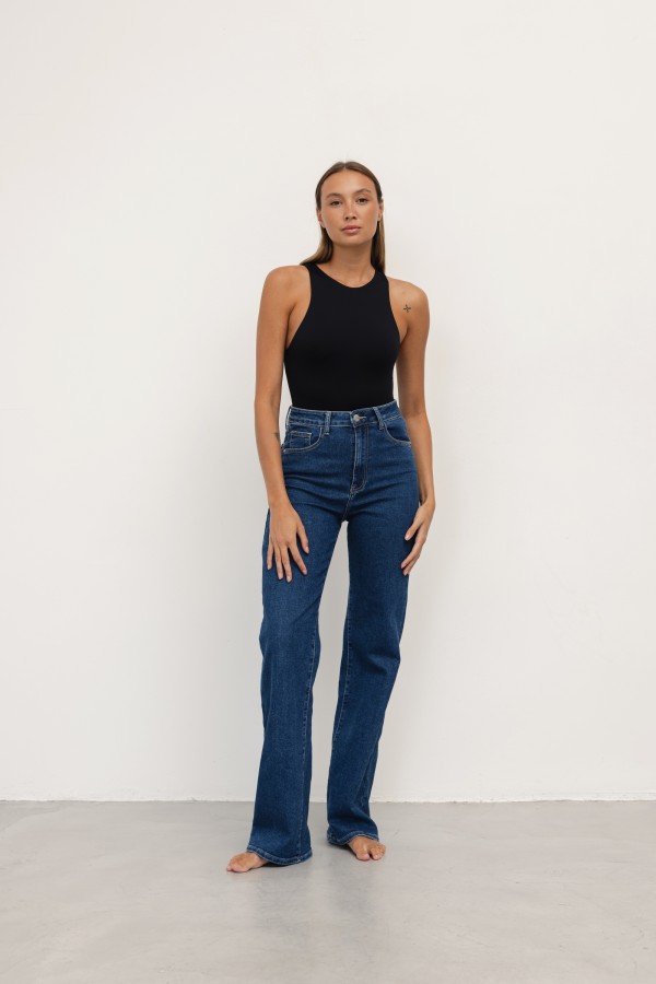 Džinsi ar augstu vidukli un izplūdušu apakšmalu.