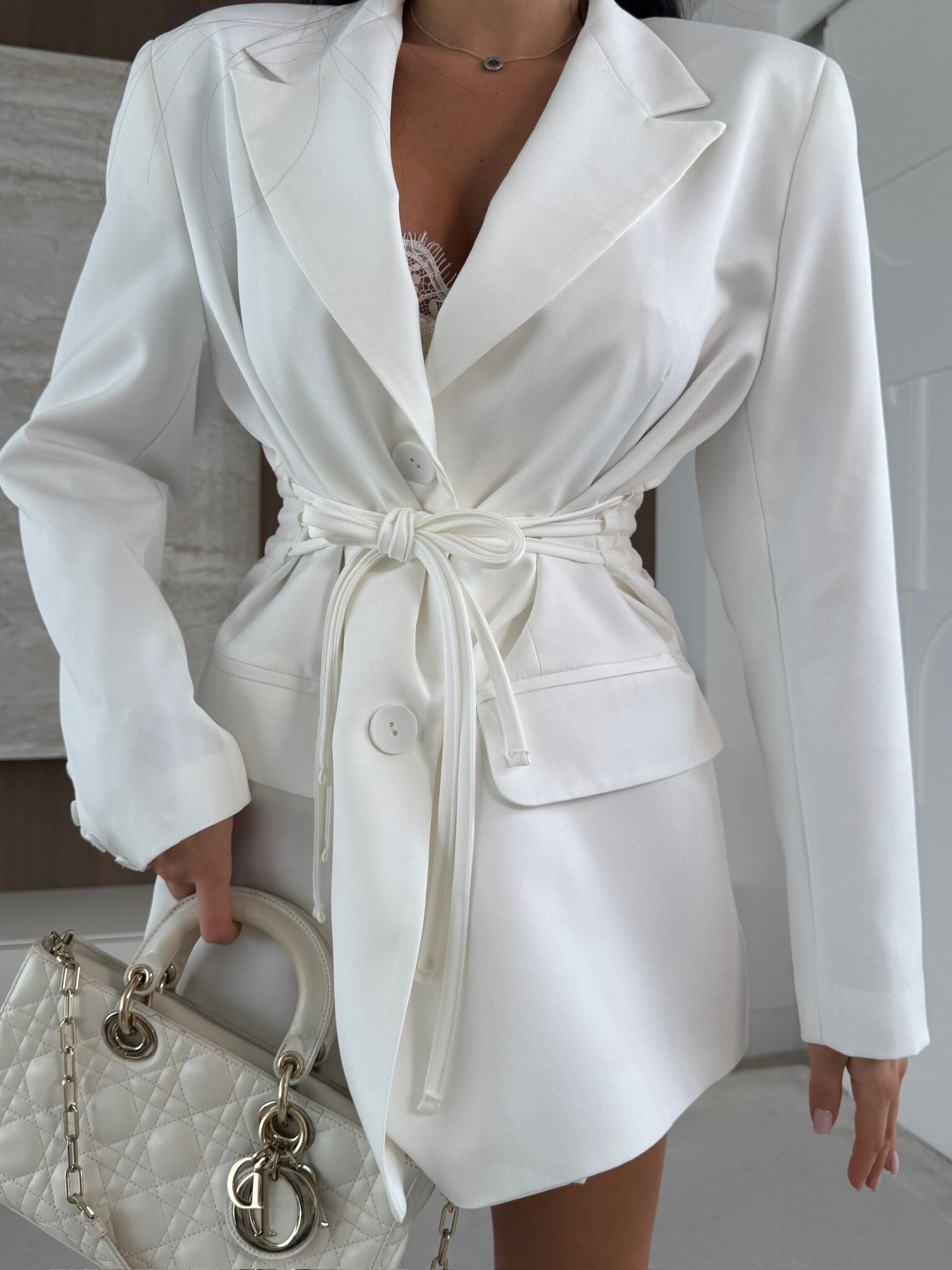 Izgatavots ar uzmanību detaļām, plecu spilventiņi. Regulējama pogas aizdare. Aukliņas sānos vidukļa ieapaļošanai.