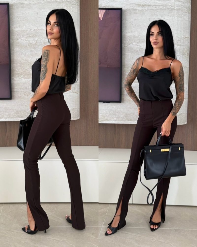 Biksēm ir piegulošs siluets un platākas kājas ar šķēlumiem. Tās ir perfekti piegulošas, nodrošinot pilnīgu kustību brīvību. Augstais viduklis veido vidukli.