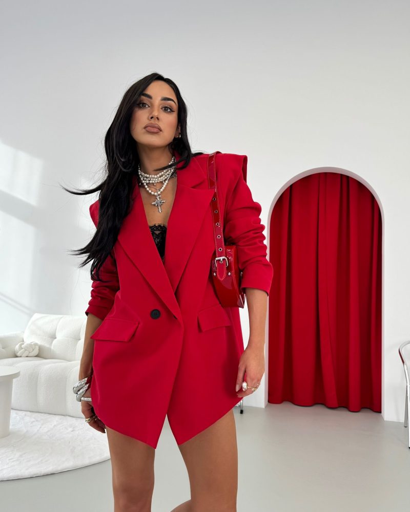 Izgatavots ar uzmanību detaļām no skaista auduma. Gluda apdare. Garāki matu griezumi.