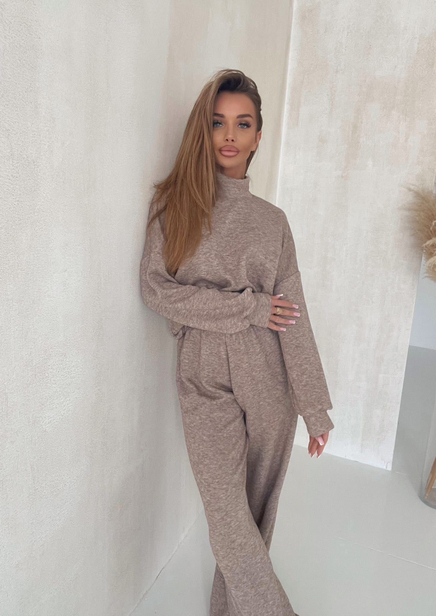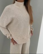 Trikotāžas komplekts, džemperis + bikses. Plats piegriezums. Elastīga josta.
