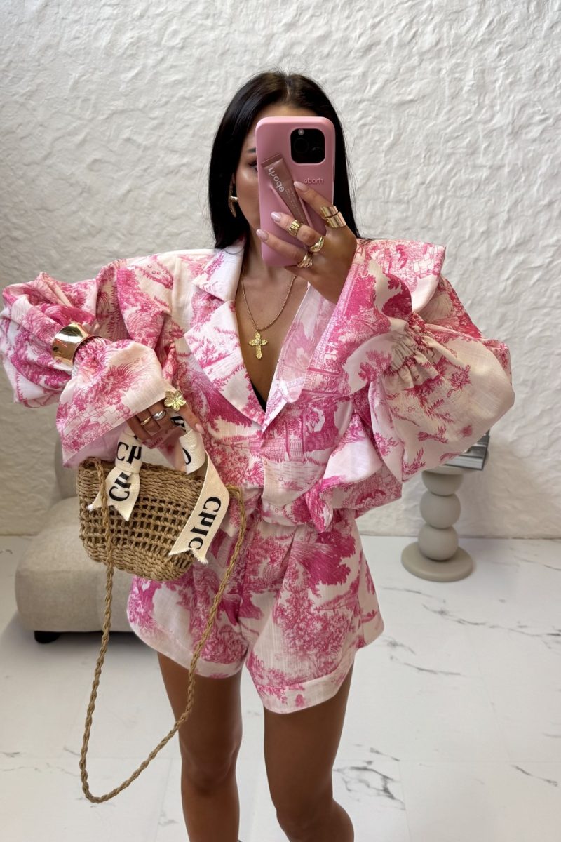Krāšņs komplekts, kas noteikti ir jūsu garderobē. Komplektā ietilpst jauks krekls un šorti. Šortiem ir elastīga josta, tāpēc tie lieliski pielāgojas jūsu figūrai. Tas ir jauks piedāvājums vairāk nekā vienam gadījumam.