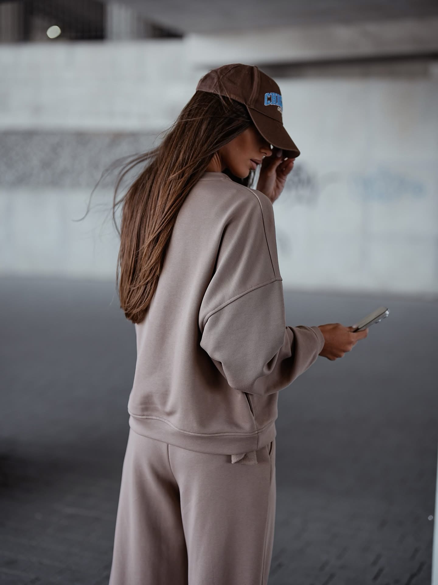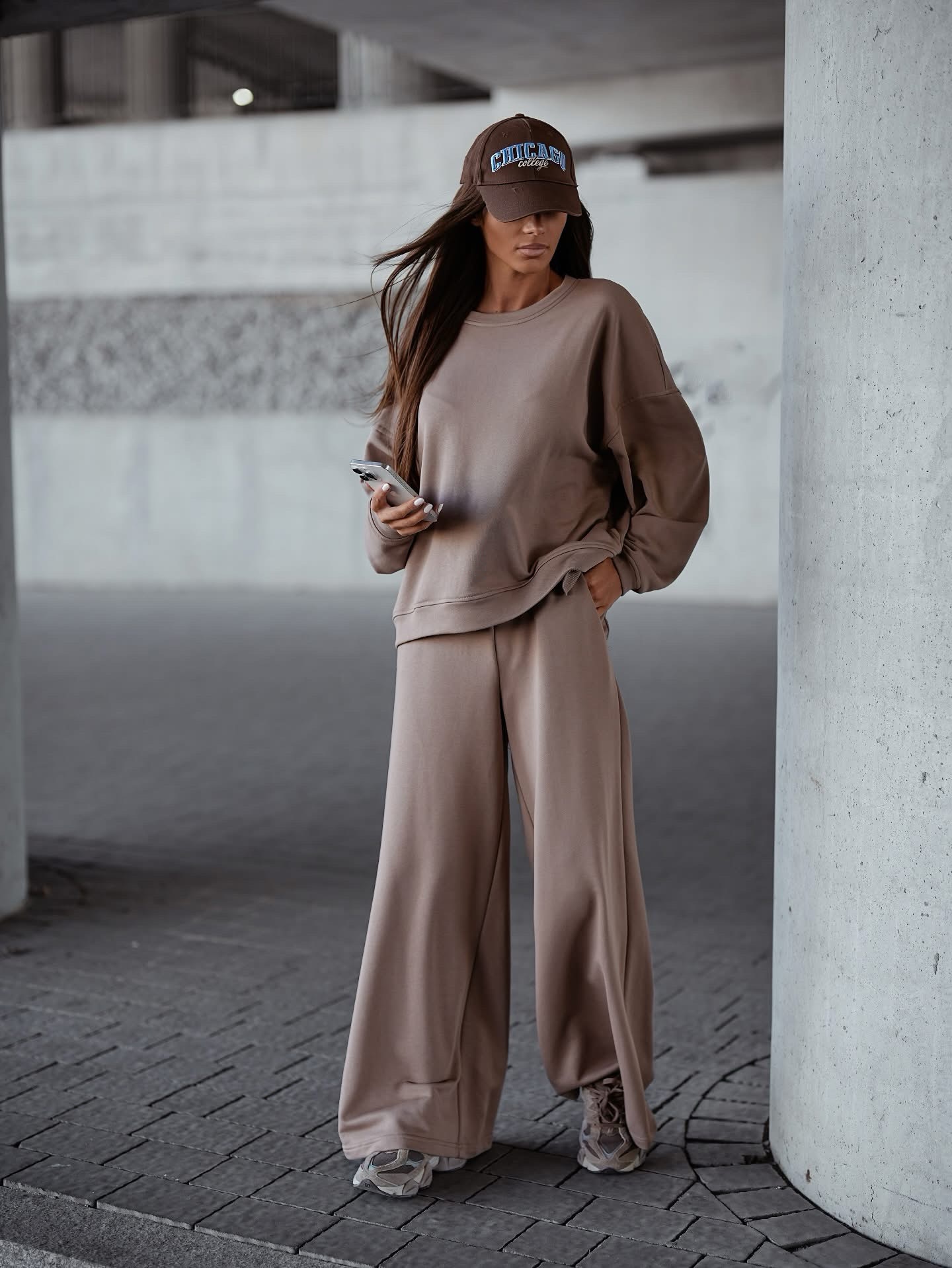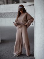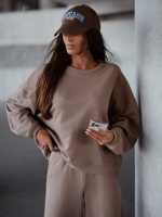 Īsāka piegriezuma džemperis + bikses ar elastīgu jostu. Gluda virsma. Izgatavots no ērta auduma.