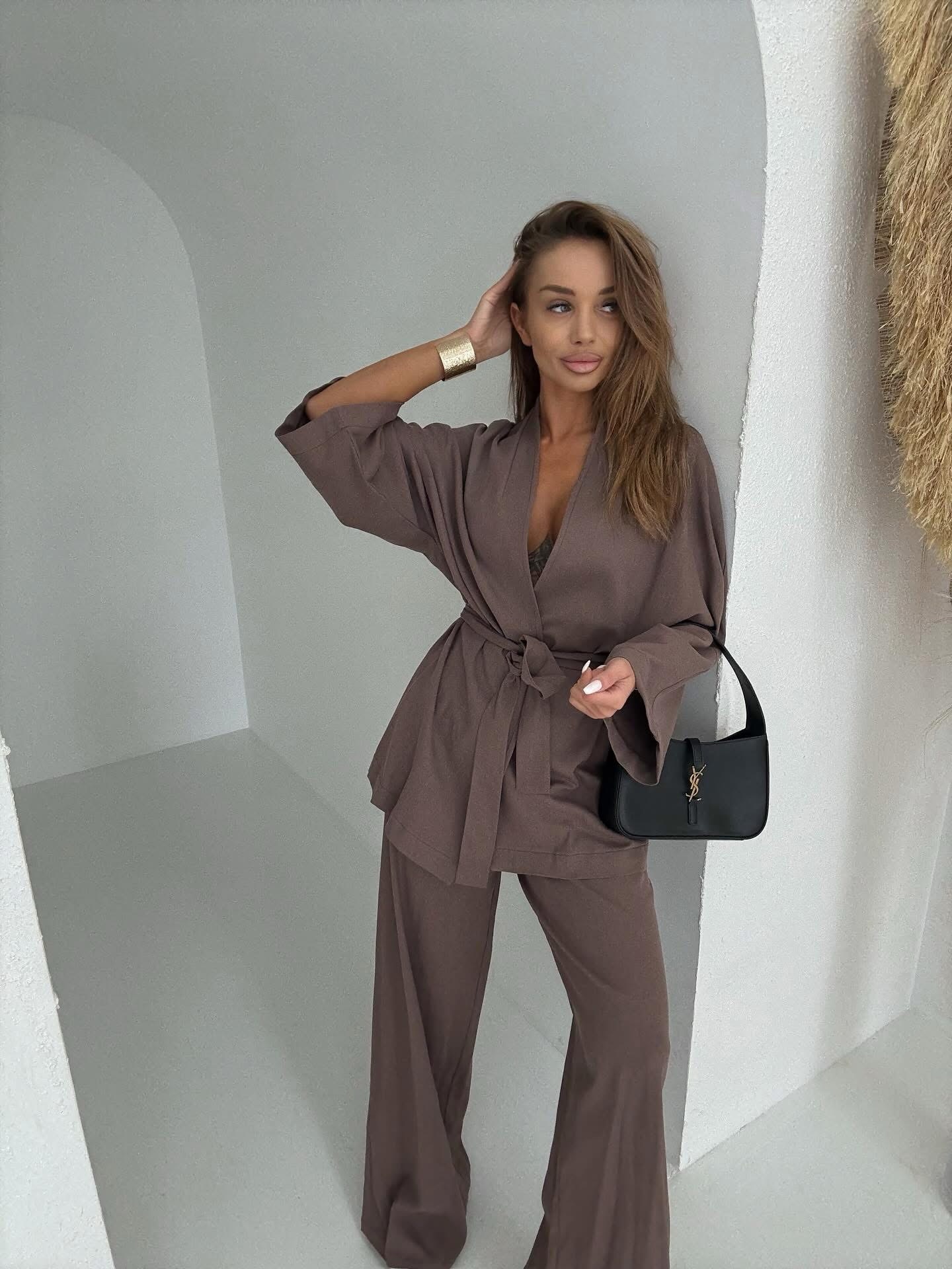 Lina brīvā laika tērps. Kimono augšdaļa un bikses. Augšdaļa lieliski noderēs kā brīvdienu peldkostīms.