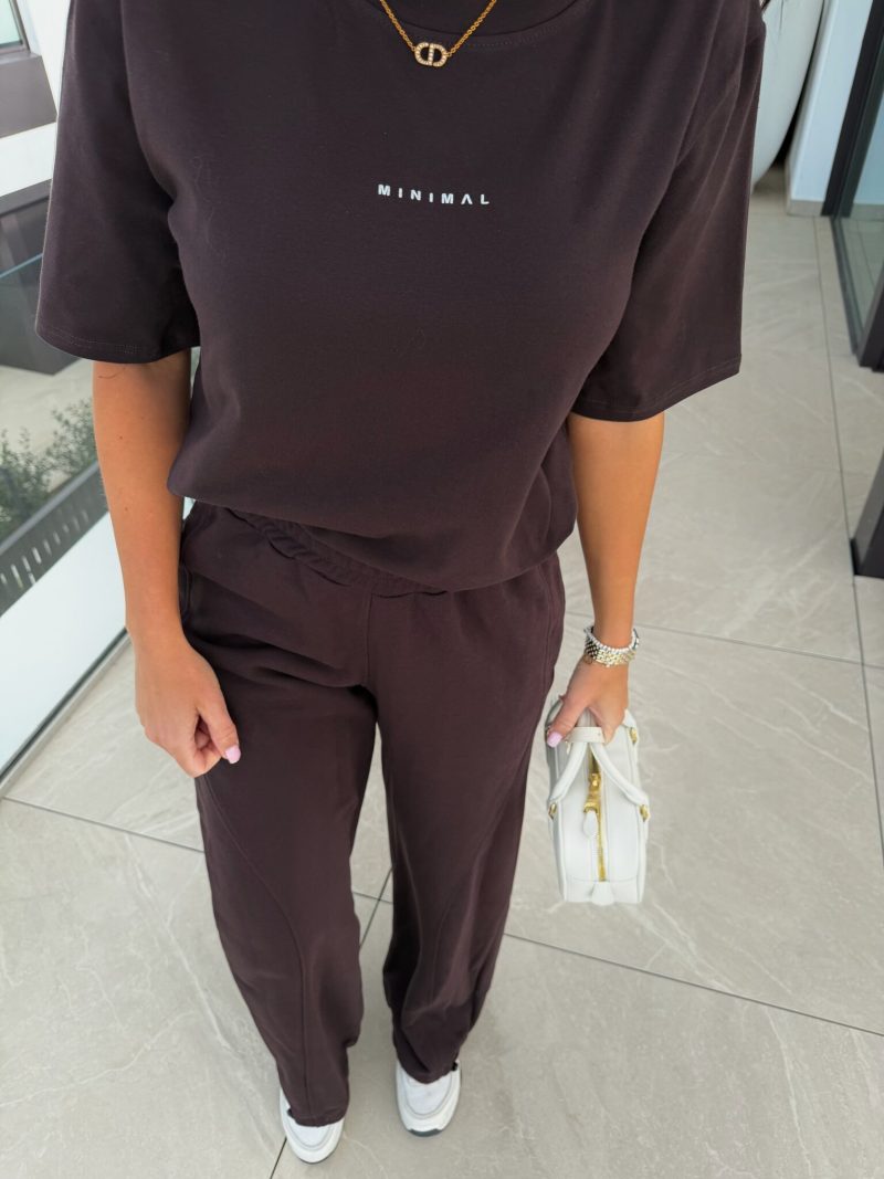 Minimāls T-krekls no gluda auduma. Tam ir minimālisma stila apdruka. Vaļīgs piegriezums nodrošina valkāšanas komfortu.