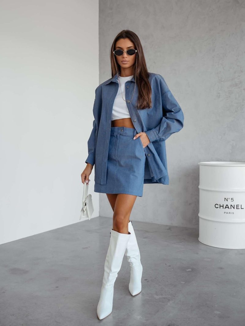 Džinsa apdare, garāks piegriezums. Regulējama pogas aizdare.