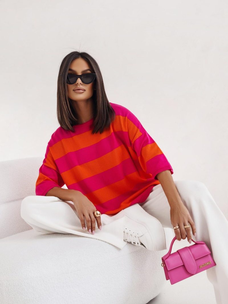 Unikālais Laure džemperis ar oversize piegriezumu ir lieliska alternatīva klasiskajiem džemperiem. To paspilgtina uz piedurknēm izvietotā rievotā apdare. Lieliski sader ar biksēm vai svārkiem.