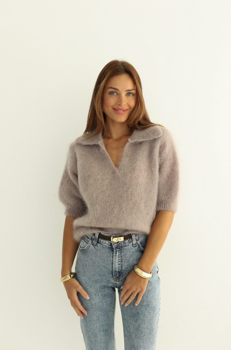 Bēšs polo džemperis brīvā piegriezumā. Esam pārliecināti, ka tas palīdzēs jums izveidot daudzus fantastiskus tēlus! Šis nedaudz lielākais modelis ar īsām piedurknēm ir izgatavots no mīksta, izturīga materiāla. Šī dāmu džemperis ir lieliska ideja, lai to kombinētu ar biksēm ar augstu vidukli un augstpapēžu kurpēm.