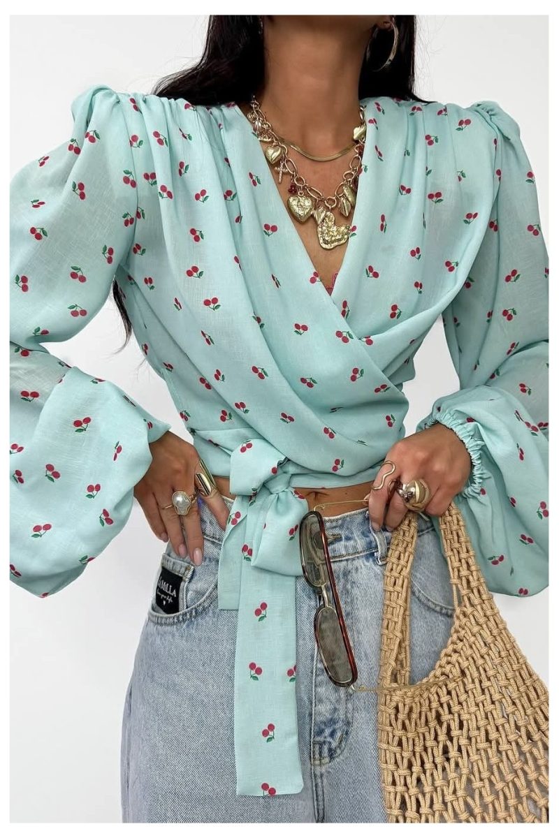 Sastāvs: 95% viskoze, 5% elastāns Blūze, ko var sasiet divos veidos. Kopējais garums: 45 cm Krūšu apkārtmērs: no 90 cm līdz 104 cm.