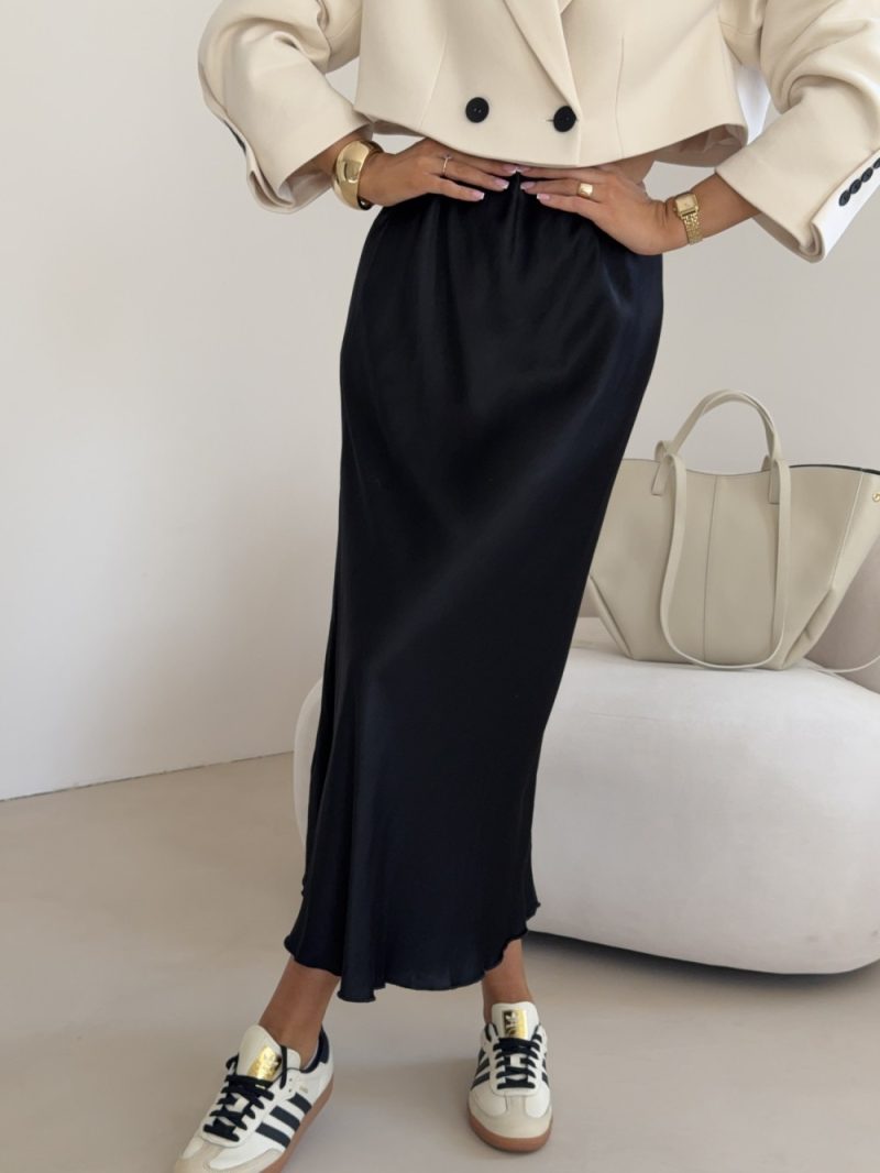 Slaids un viegls materiāls, midi garums. Elastīga jostasvieta.