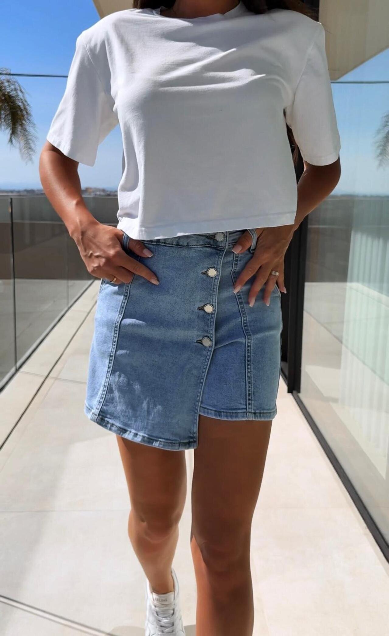 Mini garums, daudzslāņains piegriezums. Pogu aizdare.
