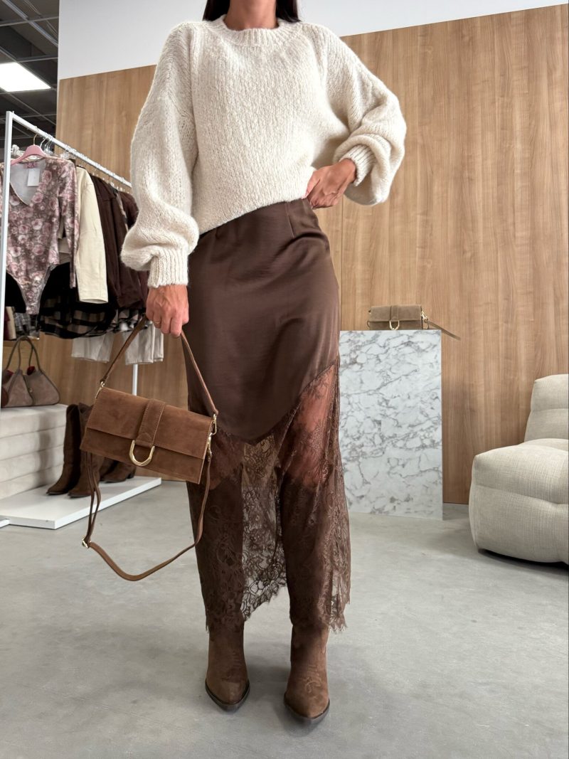 Satīna un mežģīņu apdare, midi/maxi garums. Regulējams rāvējslēdzējs sānos.