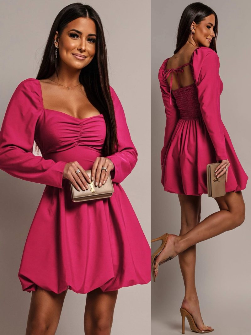 Mini garuma kleita no elastīga auduma. Krūšu zona ar iepakojumiem, aizmugurē – elastīga gumija. Skaisti oderēta.