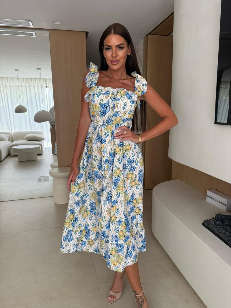 Modes modelis, ļoti sievišķīgs piegriezums. Kleitai ir stingrāki lāpstiņas.