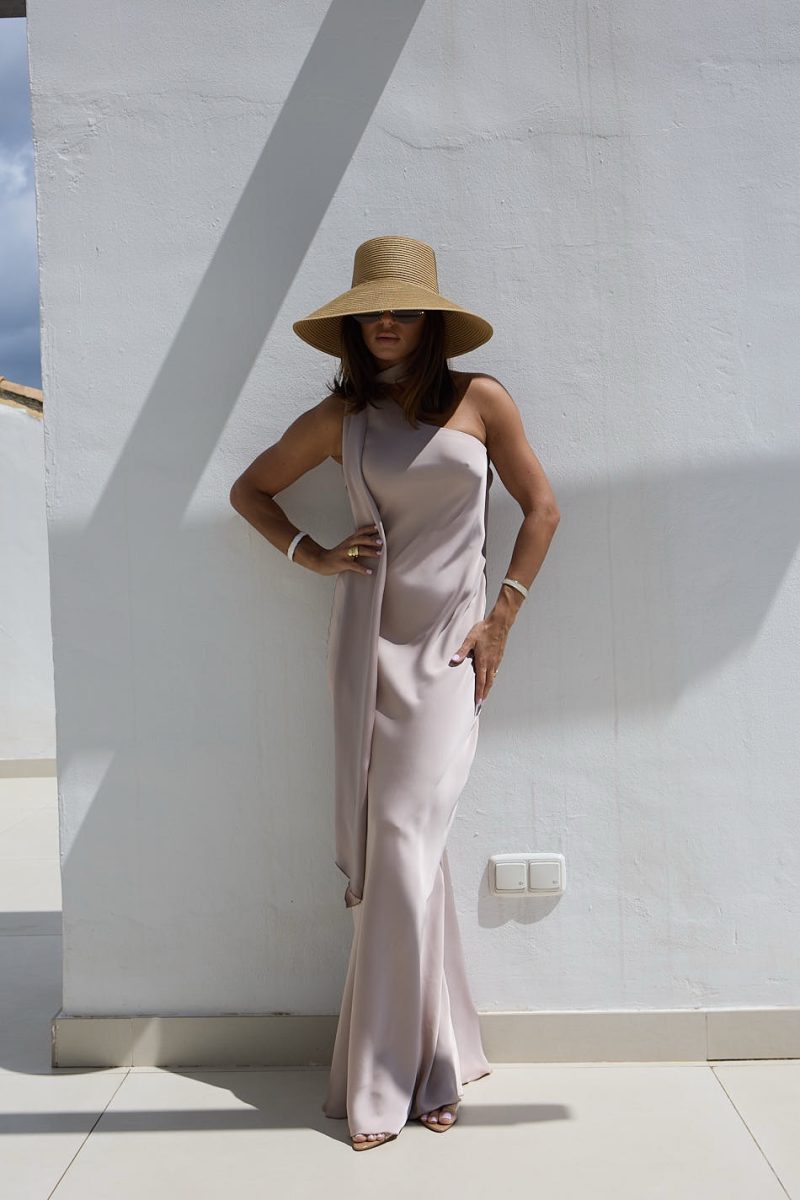 Maksi garuma kleita ar lenti pie kakla. Nedaudz paplašināta gurnu daļā.