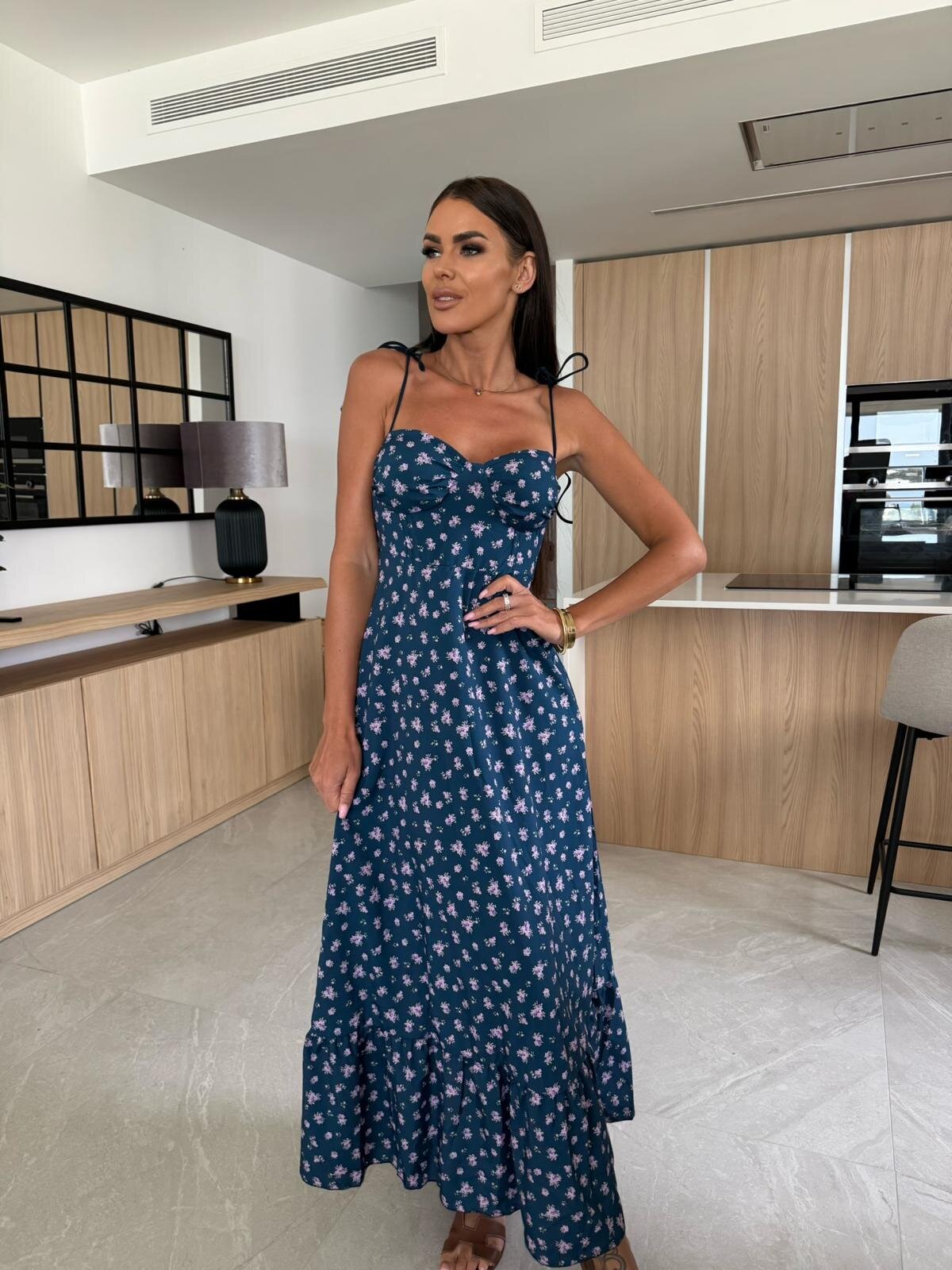 Mežģīņu apdare, sievišķīgs piegriezums. Atklāta kakla izgriezums un mugura. Spēcīgs viduklis. Regulējams garums ar plecu siksnām. Kleita ar bļodiņām un oderi.